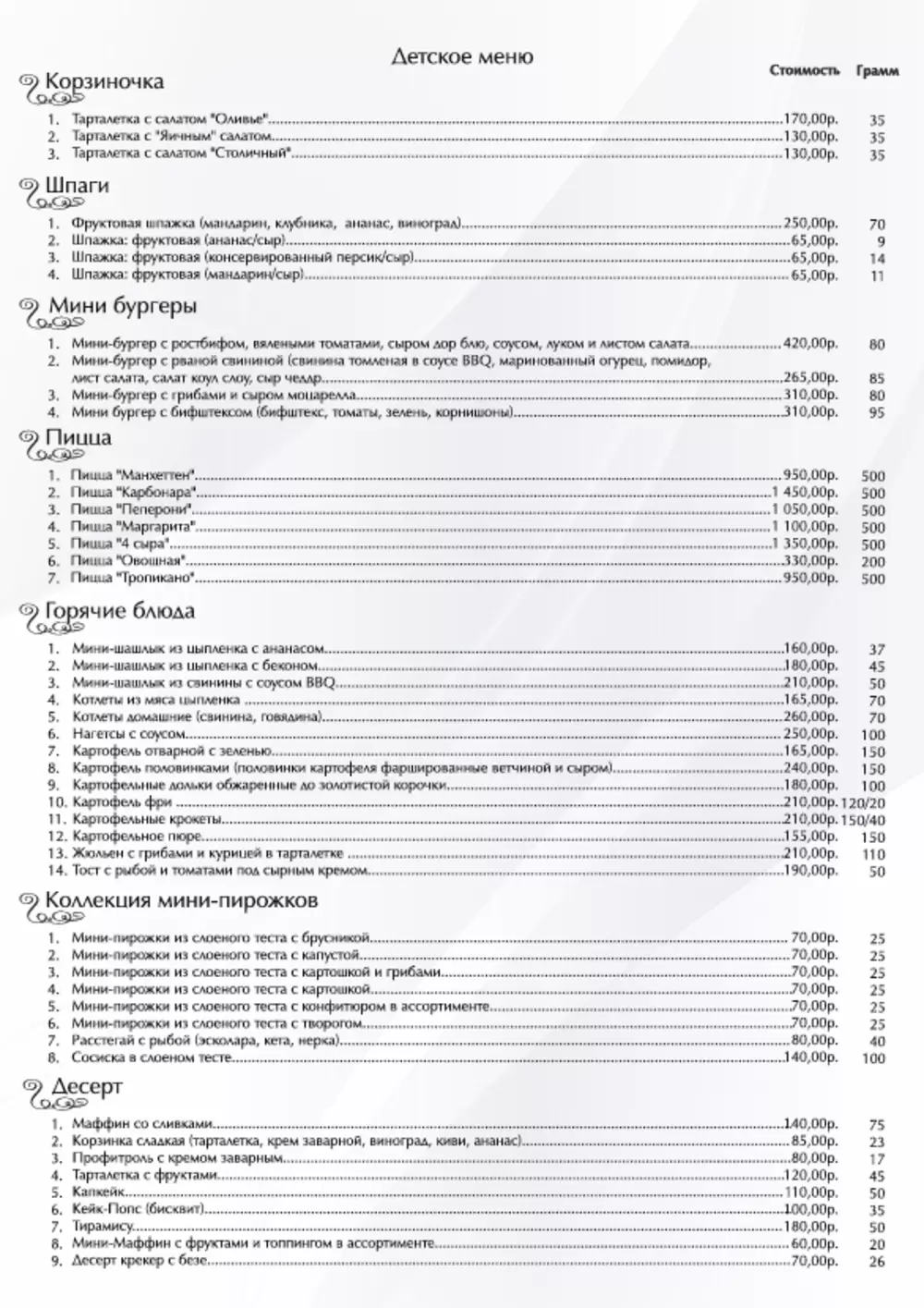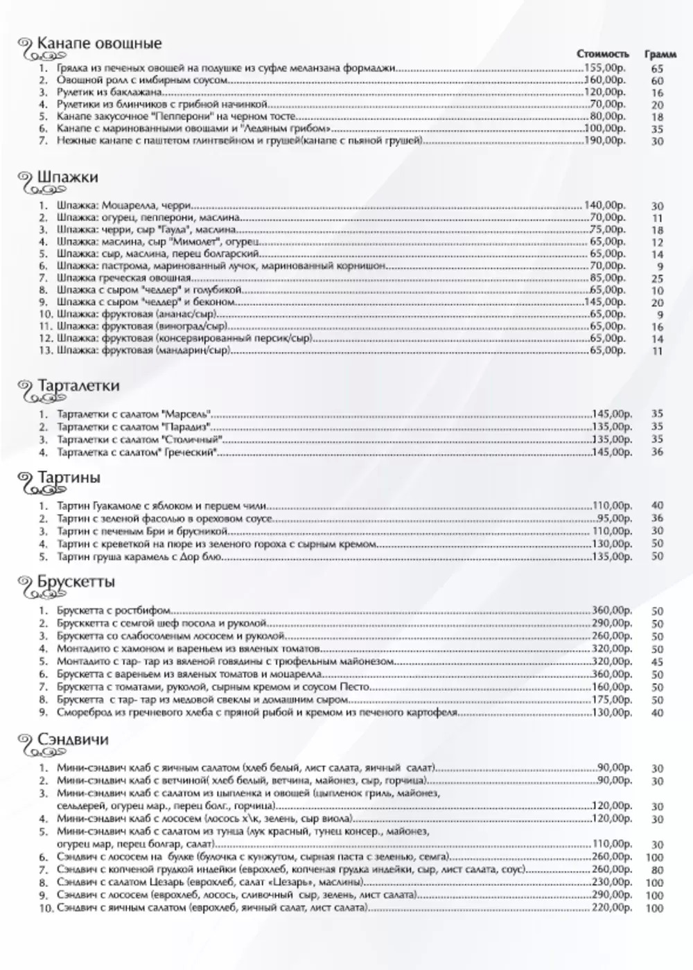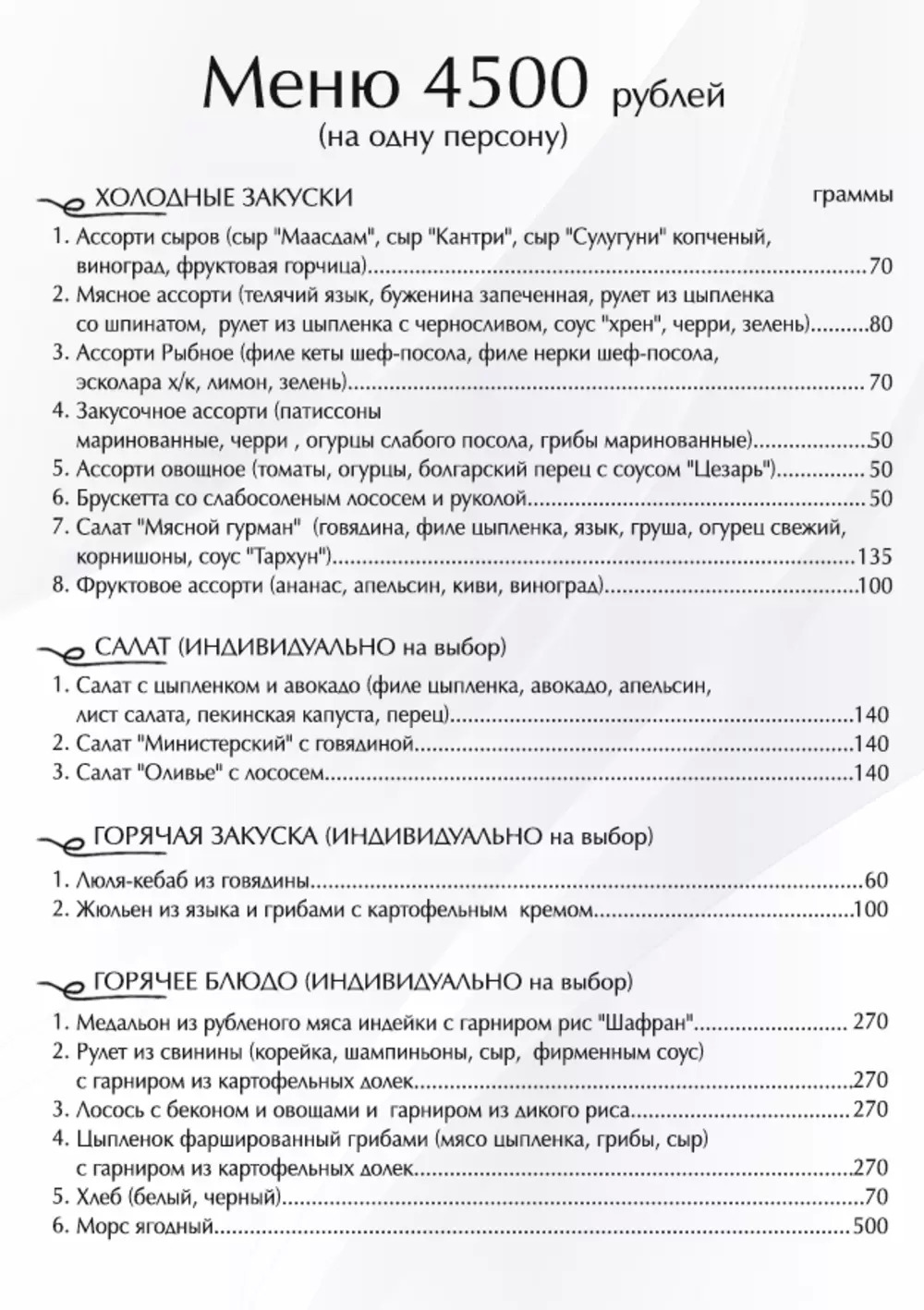 В нашем арсенале уже есть готовые меню на разные бюджеты, и вы всегда можете совместно с менеджером составить своё индивидуальное меню!