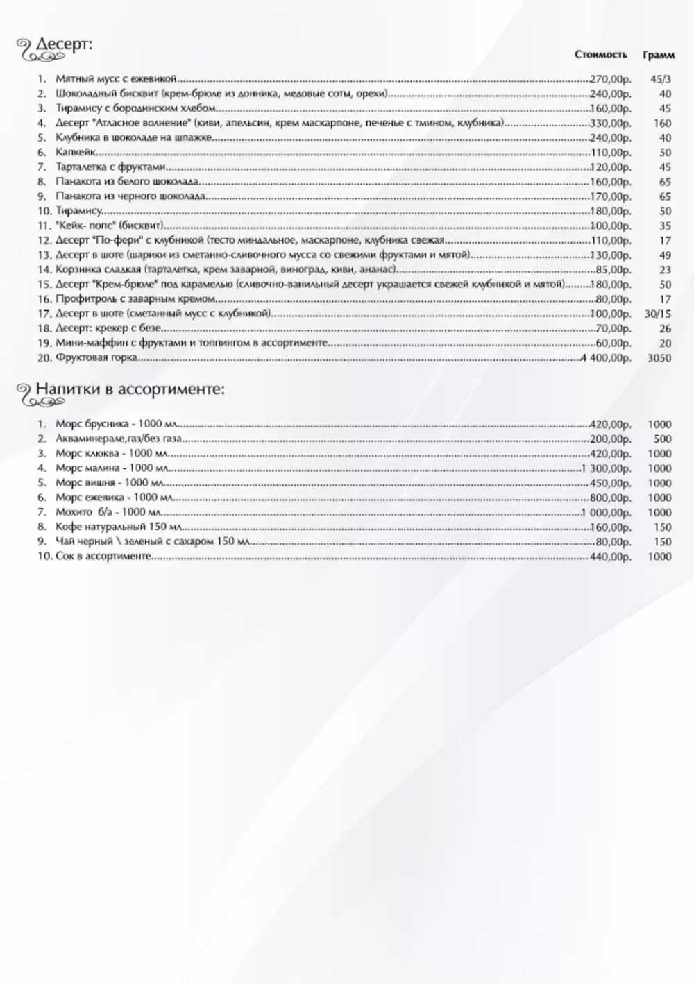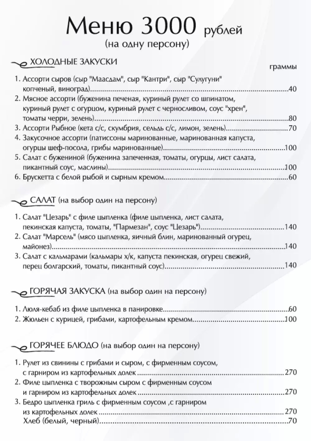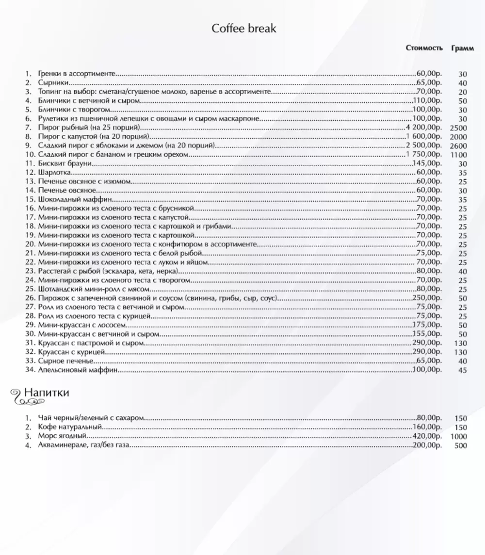 В нашем арсенале уже есть готовые меню на разные бюджеты, и вы всегда можете совместно с менеджером составить своё индивидуальное меню!